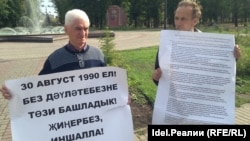 Сегодня с десяток человек вышли в пикет в сквере имени Тинчурина, посвященный 26-летию принятия декларации о государственном суверенитете Татарстана. Корреспондент "Idel.Реалии" поинтересовался у участников акции, что они испытывали в августе 1990 года, на что надеялись, и что чувствуют сейчас. Кроме того, на пикете подняли тему предстоящей пролонгации договора о разграничении полномочий между федеральным центром и республикой. По мнению участников акции, текст договора необходимо вынести на республиканский референдум.