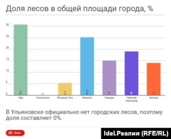 В Ульяновской области радикальное сокращение площади городских лесов наблюдается даже в Лесном плане. Согласно документу по состоянию на 1 января 2010 года в Ульяновской области было 3,2 тысяч га городских лесов. Их львиная доля – 2,9 тысяч га - находилась в Ульяновске. А на начало 2016 года городских лесов осталось 390 гектаров на всю область: 190 га – в Димитровграде, 160 га – в Барышском районе, 30 га – в Инзенском и 10 га – в Сурском. И нисколько – в столице (к счастью, в ней пока еще есть леса на землях лесного фонда – 0,8 тыс. га и обороны и безопасности – 2,5 тыс. га).