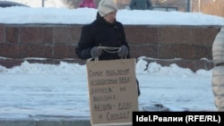 В Самаре сегодня минус 15. В акции приняло участие около двадцати человек, большинство из которых составляли пенсионеры. Как рассказали участники пикета корреспонденту "Idel.Реалии", эта традиционная акция протеста проводится тридцать первого числа каждого месяца.