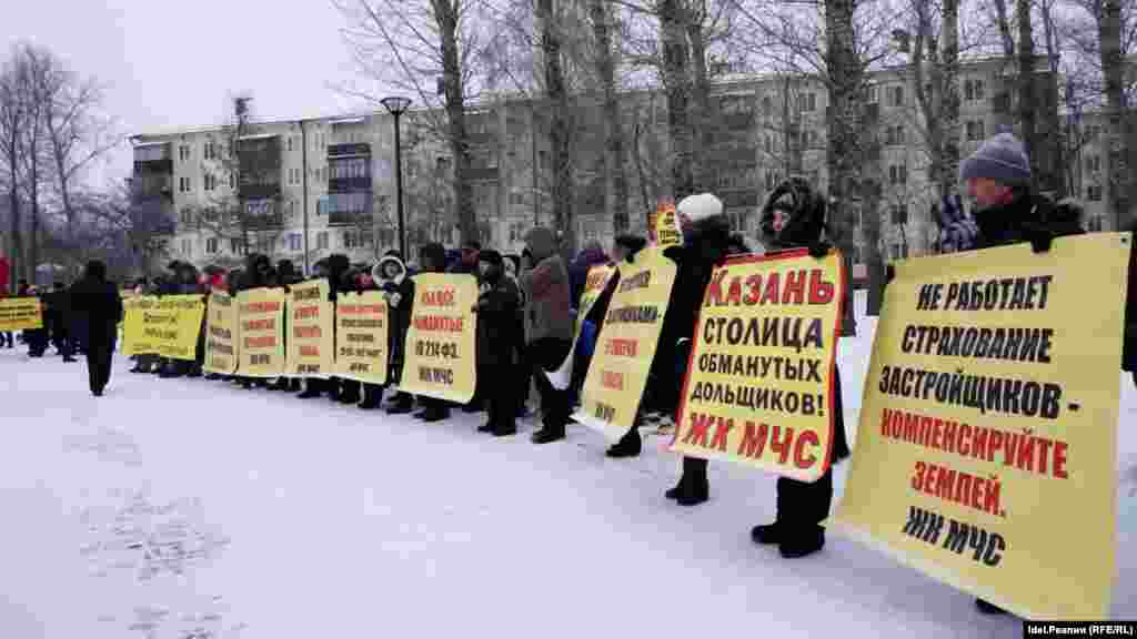 Митинг реготделения КПРФ и Союза профсоюзов СОЦПРОФ сегодня объединил вокруг себя сразу несколько групп протестующих — клиентов Татфондбанка и Интехбанка, дольщиков ЖК "Молодежный" и ЖК МЧС, жителей Осиново, чьи дома определили под снос, "детей войны" и жителей домов на Фучика, где власти забрали придомовую территорию для стоянки. Акция прошла в сквере им. Карима Тинчурина и собрала более 500 человек.