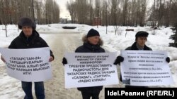 Кроме того, участники сегодняшнего пикета подняли вопрос и о татарской радиостанции Тәртип FM. В начале февраля руководитель аппарата президента Татарстана Асгат Сафаров отметил, что он и глава республиканского агентства по печати и массовым коммуникациям "Татмедиа" Айрат Зарипов "проморгали" сделку по приобретению российским медиахолдингом "РуМедиа" частоты 93.5 FM, на которой вещает Тәртип FM.