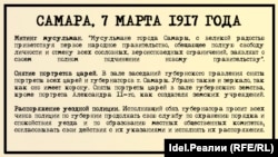 - Митинг мусульман. Вчера в большом зале биржи состоялся многолюдный митинг проживающих в городе мусульман. Митинг затянулся почти до 1 ч. ночи, так как многочисленные речи ораторов, а главным образом выборы 5 представителей от мусульман в комитет народной власти взяли слишком много времени. В заключение посланы одного и того-же содержания телеграммы председателю совета министров Львову и председателю Гос. Думы М.В. Родзянке. "Мусульмане города Самары, с великой радостью приветствуя первое народное правительство, обещающее полную свободу личности и отмену всех сословных, вероисповедных ограничений, заявляют о своем полном подчинении новому правительству".