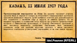 Запрещение митингов и собраний. Исполнительный комитет Совета рабочих, солдатских и крестьянских депутатов доводит до сведения товарищей солдат и рабочих всех граждан гор. Казани, что в течении трех дней понедельника, вторника и среды (10, 11, 12-го июля) всякие демонстрации, собрании и митинги без особого разрешения Исполнительно Комитета безусловно не допускаются. Исполнительный Комитет призывает всех подчиниться этому постановлению, чтобы не вызвать тяжелой необходимости прибегнуть к мерам принуждения.