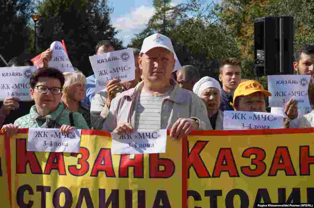 Сегодня, 16 сентября, сквере имени Тинчурина в Казани прошел митинг обманутых дольщиков. В акции приняли участие около двухсот человек. Все они— представители инициативных групп замороженных объектов Казани — ЖК "Золотая середина", ЖК МЧС, ЖК "Царицынский бугор", ЖК "Молодежный", ЖК "Симфония", 68 квартал и других.