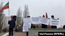 Участники митинга-концерта держали в руках плакаты "Все чиновники в Татарстане должны знать татарский язык. Требуем выполнения 8-й статьи Конституции Татарстана", "Республика Татарстан — демократическое правовое государство, объединенное с Российской Федерацией Конституцией РФ, Конституцией Татарстана и Договором РФ и РТ. Конституция РТ, ст.1", "С великим праздником, Днем Конституции Татарстана".