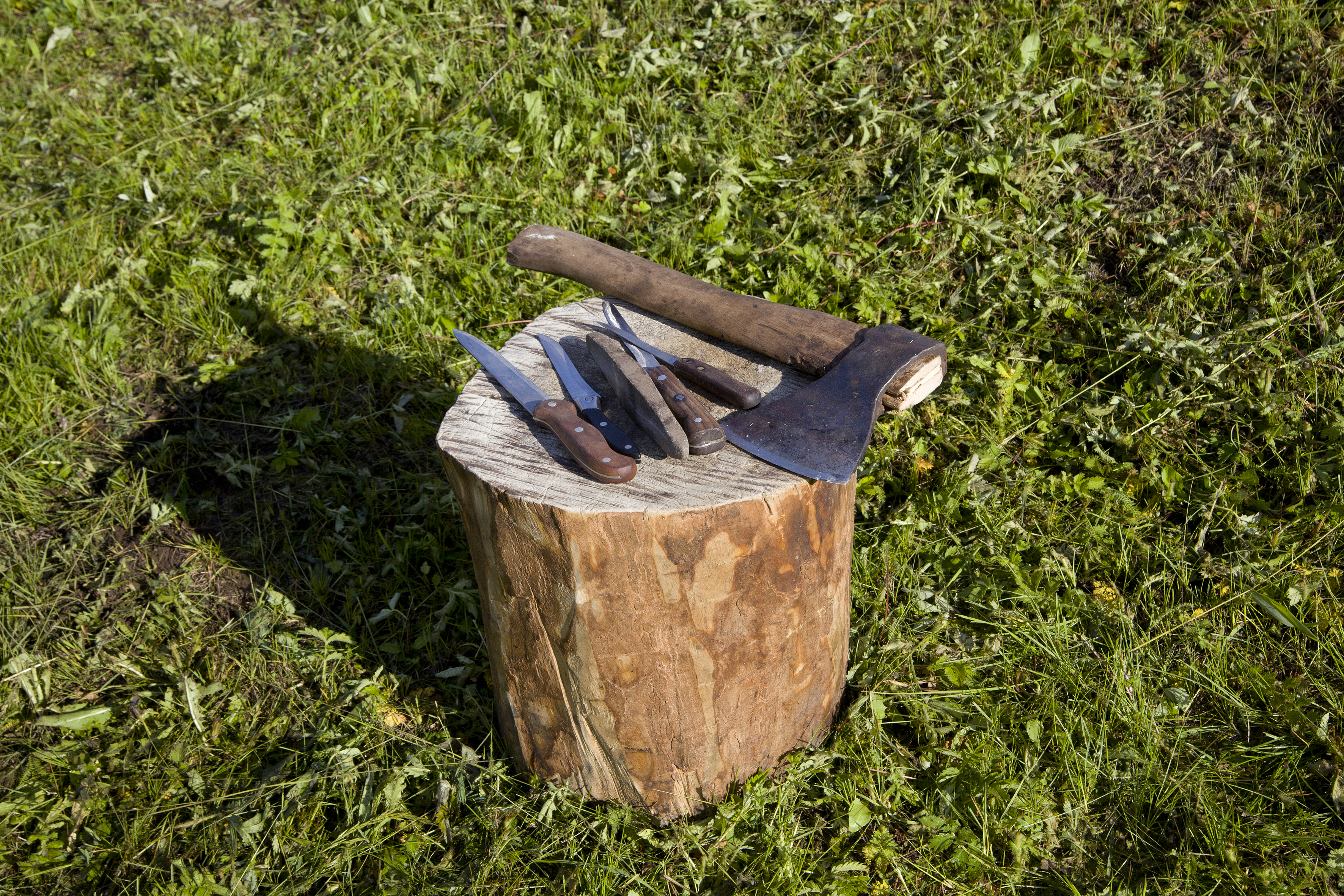 Через час разделки туши от бычка остается только голова и четыре ноги, связанные вместе. За рога мужчины крепят веревку, к ней привязывают ноги. Ухватив все это за веревку, они несут остатки к дубу, что прямо у ручья. Там уже стоит лестница. Один из мужчин поднимается по ней и за ветку крепит конструкцию. После каждому присутствующему дают отпить немного пива из кружки. Основная часть обряда завершена.