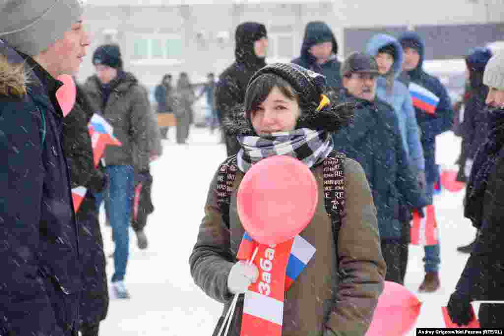 Протестующие держали в руках флаги России, красные воздушные шары, таблички со словом "забастовка", плакаты "18 марта выбираю забастовку", "Мне стыдно голосовать", "Сам не иду и вам не советую!", "Мне некого выбирать!"