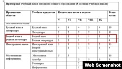 Для 5-9-х классов предлагается два варианта учебной программы. В обоих из них предметам "родной язык" и "родная литература" отводится по одному уроку в неделю. В одном из вариантов в 9 классе урока "родная литература" нет вообще.
