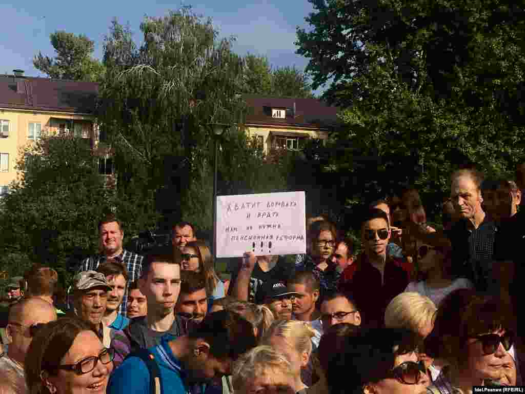 Акция прошла в парке Тинчурина. Исполком города не согласовал митинг, предложив организаторам провести его в посёлке Юдино. Сторонники Навального тем не менее призвали активистов прийти в парк Тинчурина. В акции приняли участие около 500 человек. Двое человек, державших плакат "Нет пенсионной афере", были задержаны. Митинг медленно превращается в шествие. Часть протестующих (около 200 человек) приняла решение идти в сторону центра Казани, пока неизвестно, куда именно.