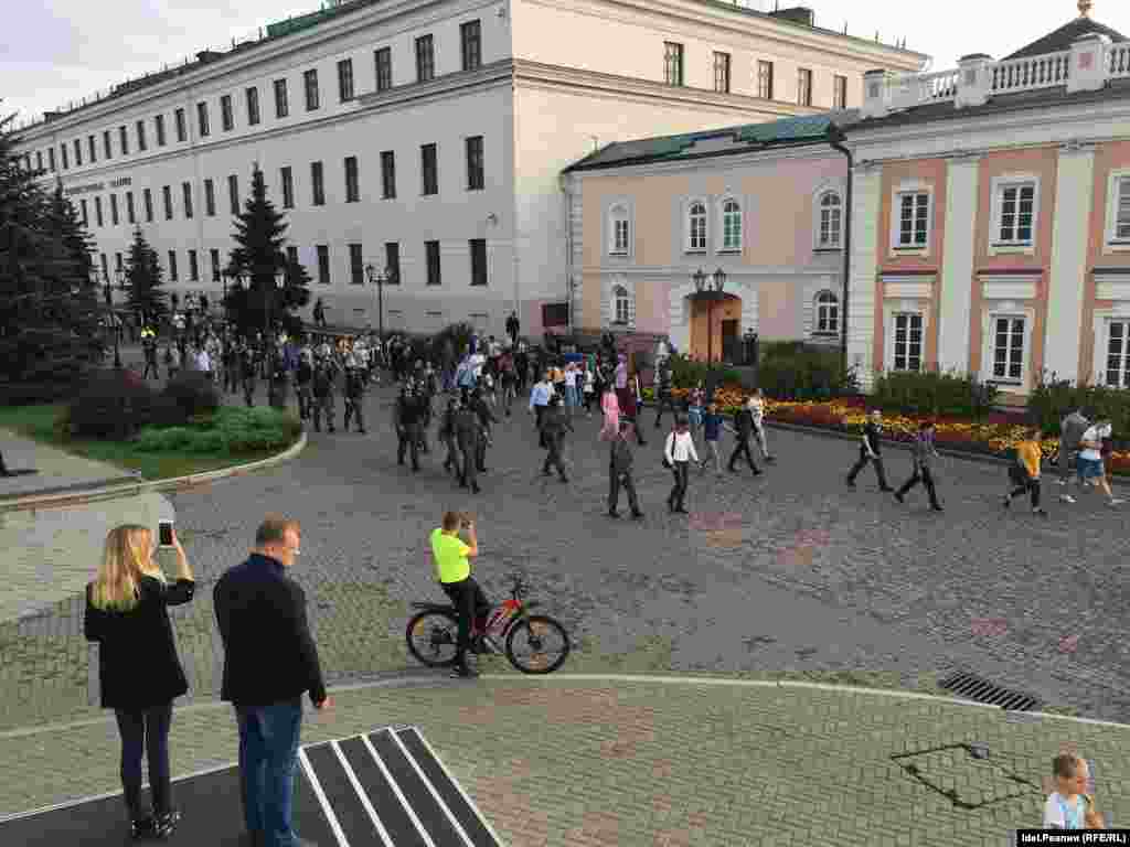Участники шествия идут по Казани, скандируя: "Путин - вор!", "Верните наши деньги!" Некоторых участников задержали.