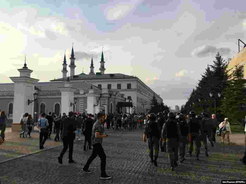 Участники шествия идут по Казани, скандируя: "Путин - вор!", "Верните наши деньги!" Некоторых участников задержали.