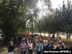 К этому моменту на еще кишащей продавцами барахолке начинается акция. Как такового митинга нет — сцена отсутствует, плакатов практически нет. К 14 часам в парке — под аплодисменты — появляется глава местного штаба Навального Эльвира Дмитриева. Прошедшую ночь она провела не дома, опасаясь того, что ее задержат еще до начала акции.