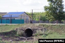 Устье первого оврага — напротив фермы, принадлежащей, как говорят жители, агрофирме "Азнакай". Для прохода воды, стекающей с него, под автомобильной дорогой, которая разделяет село и крутой склон (назовем её дорогой №1), проложена труба.