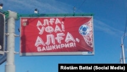 Баннеры в Уфе выполнены с ошибками. В частности, на одном из них написано "Алға, Уфа! Алға, Башкирия!". По правилам башкирского языка должно быть написано "Алға, Өфө! Алға, Башҡортостан!".
