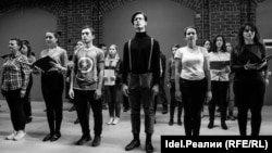 Артистов этого спектакля можно принять за зрителей: в джинсах и свитерах, они "обычно" выглядят и еще до начала представления как будто специально смешиваются с публикой. Уже потом замечаешь, что в "Әллүки" одновременно работают три труппы: хор (профессиональный коллектив Дины Венедиктовой — преподавателя Казанского музыкального училища), актеры Казанского ТЮЗа и глухонемые студенты театральной школы "Инклюзион". Я смотрела "Әллүки" в Галерее современного искусства Музея изобразительных искусств РТ (спектакль можно играть на любой площадке — он очень мобильный и без декораций), здесь пространство распределили следующим образом: для зрителей установили рядов семь стульев, позади последнего ряда выстроился хор, а впереди первого — единая команда глухонемых студентов и тюзовских актеров. Хор исполнял а капелла многим "непонятные" слова на музыку Эльмира Низамова — распевную, многоголосную, полную грусти и нарастающей силы. Актеры в этот момент либо произносили отдельные звуки (довольно агрессивно, будто плюясь), либо "говорили" на языке жестов — с завораживающей ловкостью "танцевали" одними только кистями рук.