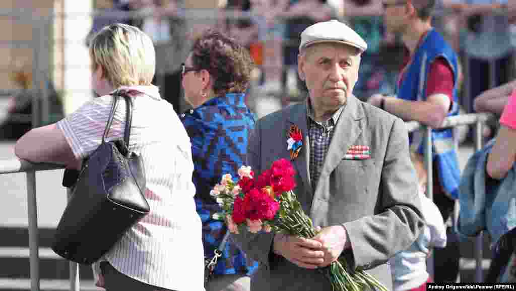Георгиевские ленты и автомобильные наклейки, которыми уже давно никого не удивишь, оказались потеснены зёлеными пилотками с красными звёздами. Так что теперь георгиевские ленты, вокруг которых поломали столько копий, практически незаметны в пестрой толпе (возможно, потому, что они уже на каждом втором встречном). Тут, правда, тоже заметна некоторая эволюция — некоторые ленты украшены значками и цветочными бутонами — но куда больше бросаются в глаза именно красноармейские пилотки. Торговцы ими расположились у входа в казанский парк Победы. Недорого, 200 рублей — штука. Правда, на взрослые головы головных уборов у продавцов немного. Не то большие размеры уже расхватали, не то основная целевая аудитория — дети.