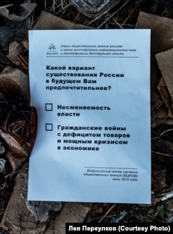 "Доверяете ли вы Путину?" — гласит вопрос на одном из них. Внизу — три варианта ответа, "да", "нет", "не определился", но квадратик для галочки напечатан только напротив первого. "Готовы ли вы выйти на протестную акцию в своем городе?" – гласит вопрос на другом листе. Варианты ответов такие: "Нет, не готов" и "Да, я поддерживаю идеи насилия и хочу дестабилизировать ситуацию в регионе через поддержку опасной оппозиции". Еще один опросный лист: "Есть ли у вас претензии к действующей власти? Опишите их ниже в специальном поле". Специальное поле, однако, оказывается полностью черным, написать на нем что-то попросту невозможно.