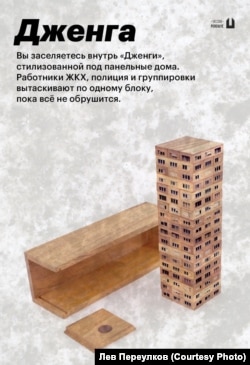 "Еще мне нравится работа про цензуру, которую я выпустил два месяца назад, где дома накрыты плакатами. Здесь мне нравится то, что удалось совместить и политику, и "закон о суверенном Рунете", и то, что, в принципе, в моем городе, в Казани, и во многих городах России архитектура скрывается за этими фальш-фасадами, за баннерами, за какими-то тканями, и это очень нелепый способ, на самом деле, укрыться от проблем".
