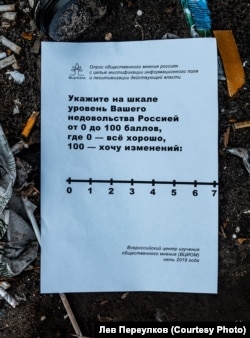 История с мгновенным подстраиванием ВЦИОМа под нужды Кремля вызвала бурную реакцию в российском обществе и сподвигла казанского художника Льва Переулкова создать серию пародийных опросных листов, которые, кажется, идеально подошли бы для антиутопий Джорджа Оруэлла или Владимира Войновича.