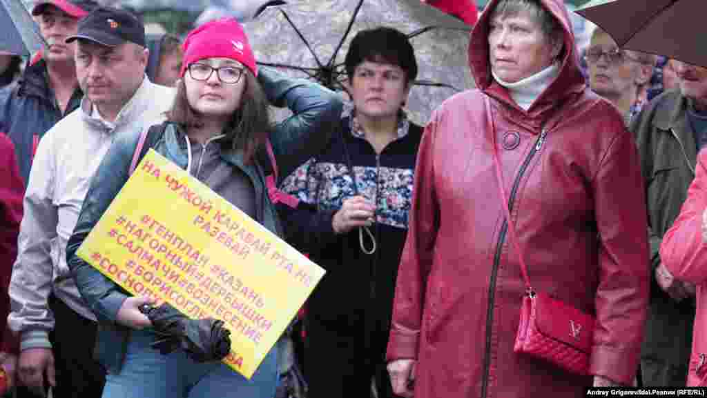 Объективно против участников митинга выступала погода. Холод и время от времени усиливавшийся дождь сделали своё дело. Тем не менее география протеста вновь расширилась: в этот раз в акции участвовали жители посёлка Вознесенского. Год назад они уже протестовали против проекта Генплана — в итоге под давлением общественности разработчики документа заявили, что новая магистраль посёлок не затронет. Однако, изучив в конце июля обновленный проект, выставленный на общественные обсуждения, жители Вознесенского обнаружили, что дорога не просто вернулась в посёлок, но и стала значительно шире — что грозит сносом как минимум 90 домам.