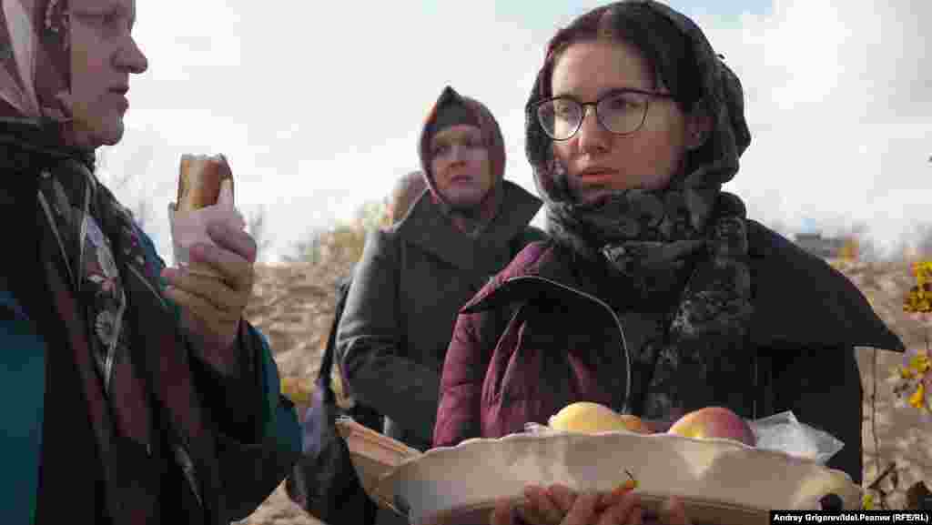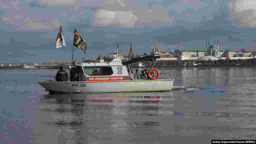После окончания молитвы небольшая группа верующих во главе с председателем Общества русской культуры РТ Михаилом Щеглов добралась до храма-памятника, на катере, предоставленном МЧС.