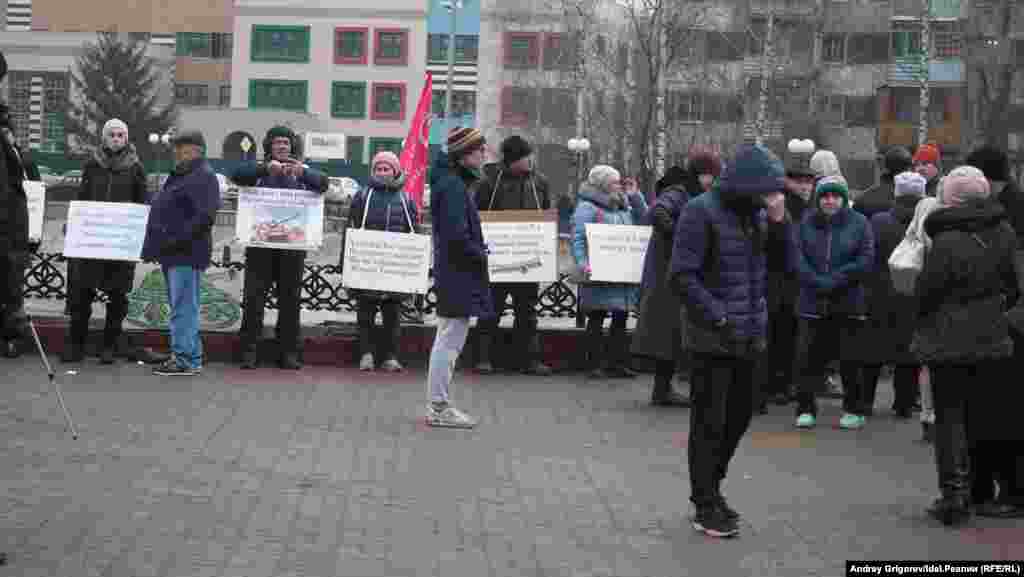 В воскресенье, 17 ноября, вышли на массовый пикет жители казанского микрорайона "Танкодром", который городские чиновники обещают "благоустроить" путём сноса частных домов. Пикет прошел "у фонтана" на улице Карбышева — так называется небольшой искусственный водоём внутри микрорайона, фонтан в котором давно уже не работает: его-то как раз, несмотря на многочисленные обращения жителей, всё никак не благоустроят.