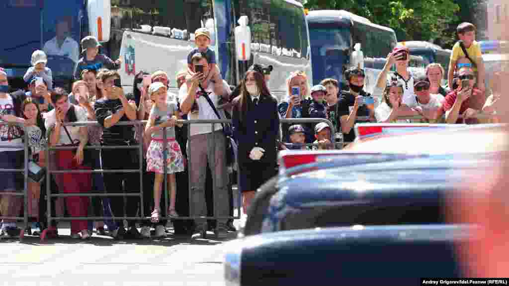 Рядовая публика могла вплотную наблюдать за прохождением войск и техники с улиц, примыкавших к Карла Маркса, по которой с площади Свободы колонны двинулись в сторону парка Горького. Безопасную дистанцию при этом не соблюдал практически никто из зрителей, маски с перчатками тоже были далеко не на всех.