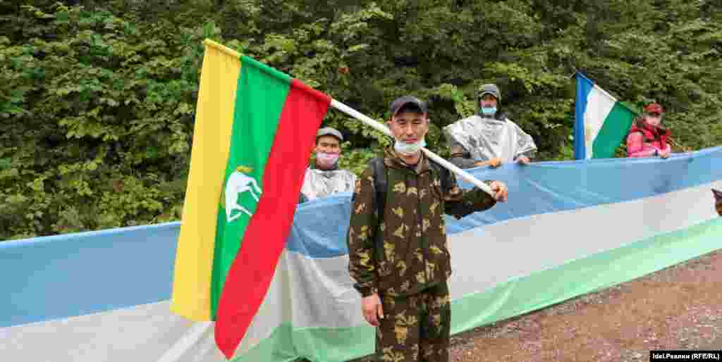 Лозунги "Хабиров, уходи!", "Хабаровск мы с тобой!", "Куштау, яшә!" тут скандируют, выстроившись в живую цепь длиной в 4 км и схватившись за триколор — только не российский, а башкирский.