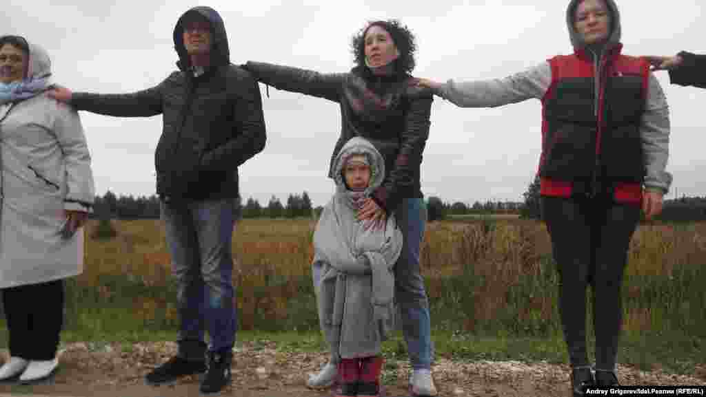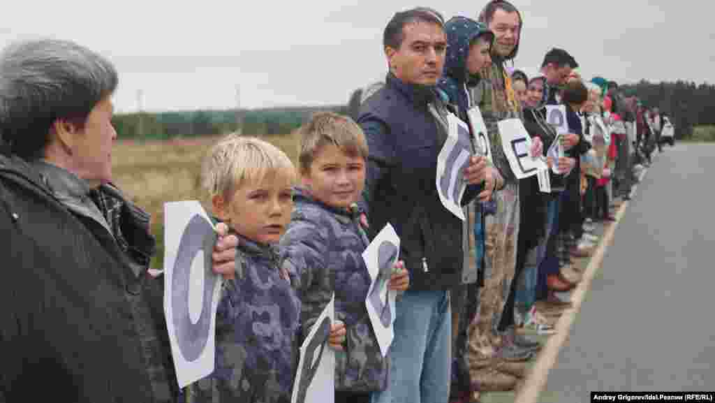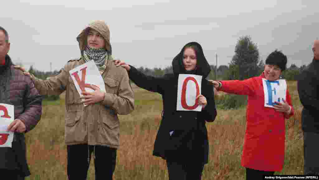 На автодороге у села Тарлаши, вдоль которого проектировщики планируют протянуть магистраль, собралось около семисот человек. Люди стояли вдоль трассы, держа в руках буквы, которые складывались в названия их населенных пунктов. Затем участники схода выстроилось в гигантские буквы так, чтобы сверху можно было прочитать слово "Стоп". Организаторы снимали акцию с квадрокоптера.