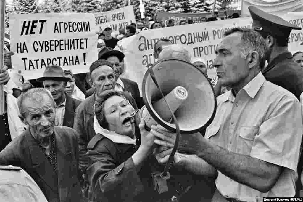 Фотограф Дмитрий Бунтуков запечатлел лица людей, которые 33 года назад — в конце августа — были на Площади Свободы в Казани, где проходили многотысячные митинги. В Набережных Челнах один из руководителей татарского национального движения Зиннур Аглиуллин объявил голодовку с требованием присвоить Татарстану статус союзной республики.