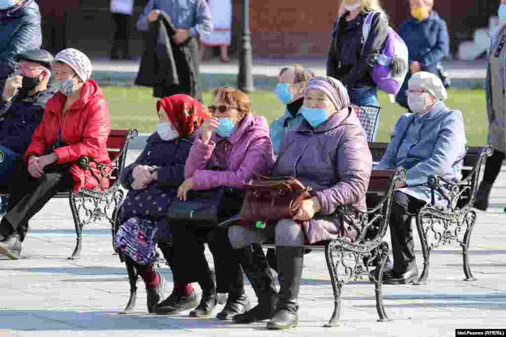 Организаторы "Пеледыш Пайрем" выдавали всем посетителям кремля одноразовые маски, обрабатывали руки входящих антисептиком. Вероятно, большая часть зрителей была в масках.