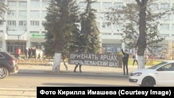 Вчера, 5 октября, в центре Перми, рядом с гостиницей Урал, активисты незарегистрированной партии "Другая Россия" (члены этой партии — сторонники идеи российского политика, бывшего председателя запрещенной в России Национал-большевистской партии Эдуарда Лимонова — "Idel.Реалии") вывесили баннер с надписью "Признать Арцах — прочь, османский шах!". В этот же день к руководителю регионального отделения партии Кириллу Имашеву пришли сотрудники Центра "Э".