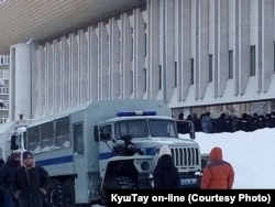 УФА. В Уфе возле Государственного концертного зала "Башкортостан" на улице Ленина, где намечена точка сбора протестующих, уже больше сотни полицейских проходят инструктаж. Очевидцы сообщают, что около здания примерно 20 автозаков.
