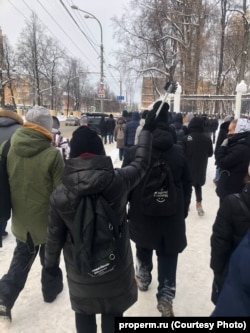 ПЕРМЬ. Канал издания properm.ru сообщает, что людей на улице "очень много". "Идут по аллее и обеим сторонам Компроса. Полиция сопровождает, но не вмешивается", — пишут они.