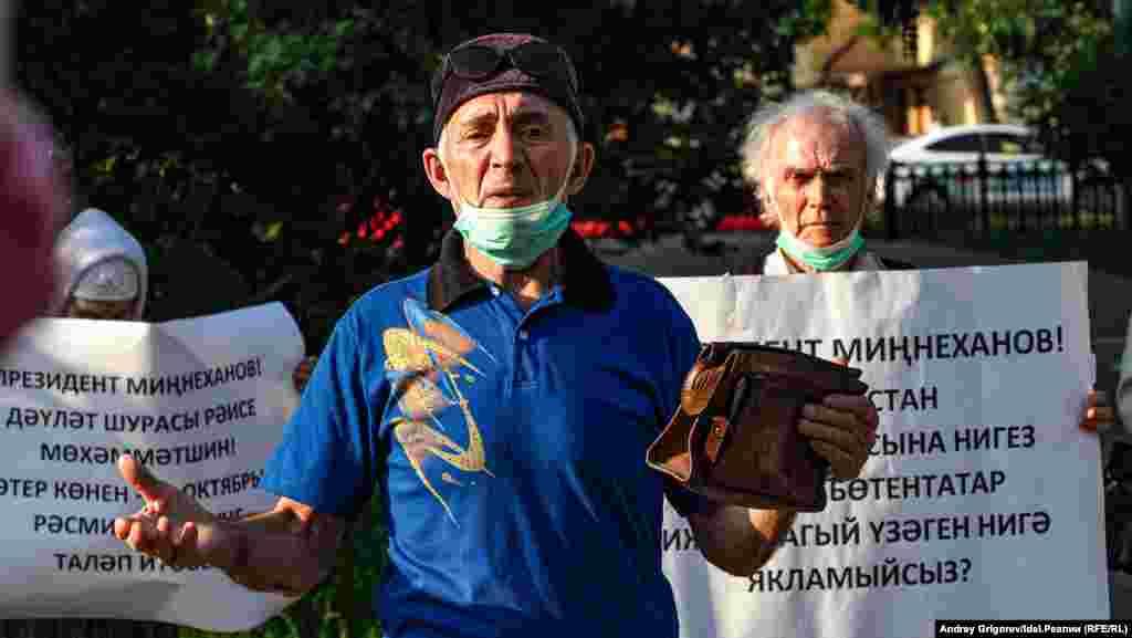 "Прокурор Нафиков! Требуем отказаться от позорного иска против ВТОЦ", гласила надпись на одном из плакатов. Еще на одном плакате была надпись "Татарстан: 2021 = 1937". Кроме того, активисты требовали от президента РТ Рустама Минниханова и председателя Госсовета Татарстана Фарида Мухаметшина признать 15 октября памятным днём (последние несколько лет власти в Татарстане под разными предлогами препятствуют проведению акций, посвященных этой дате).