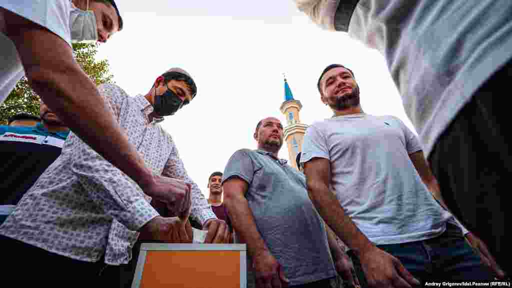 Жертвенных баранов прихожане этой мечети традиционно забивают в другом месте. Азино — густонаселенный район, вокруг мечети высятся многоэтажки и забой скота может вызвать неоднозначную реакцию. Но в этом году есть еще одна, куда более важная причина, по которой имам заявил, что крови здесь не прольётся.