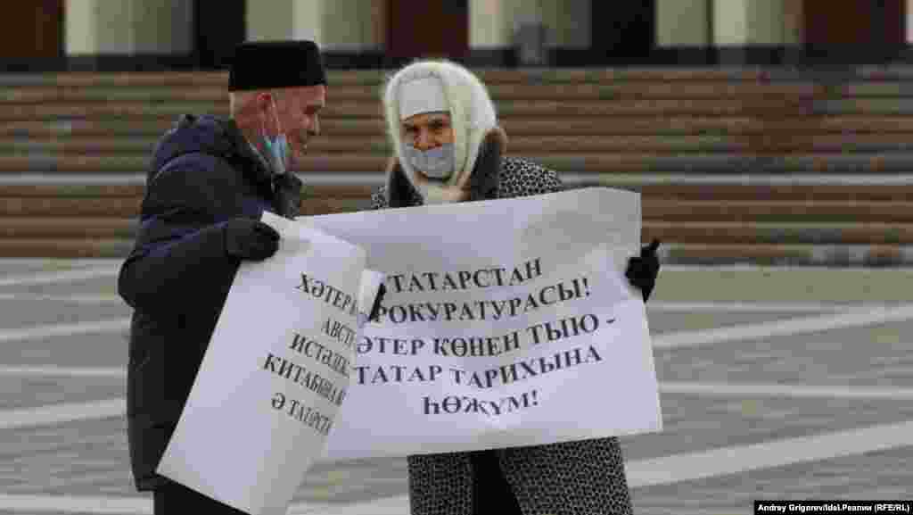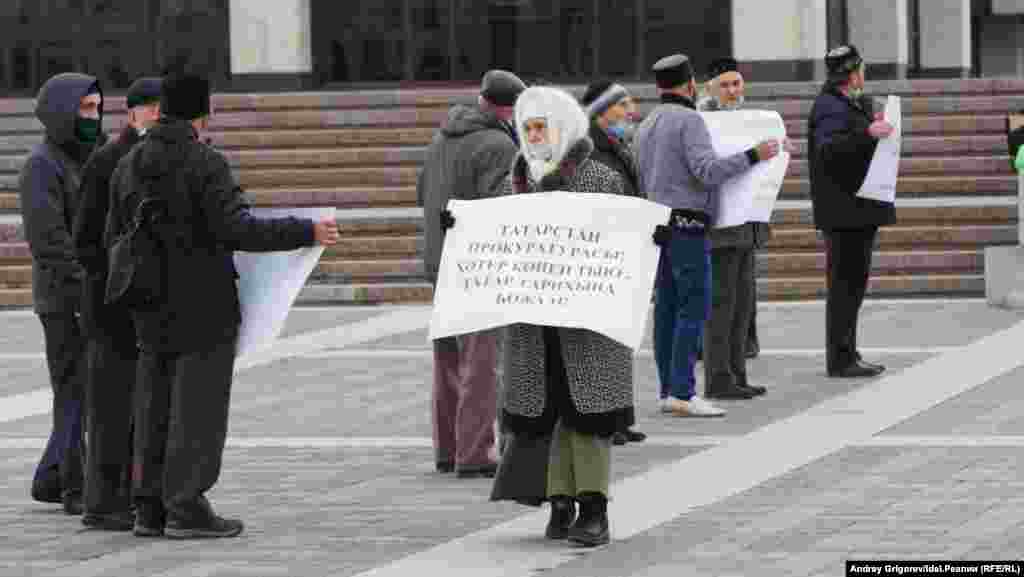 В этот раз активисты ВТОЦ решили не дожидаться даты и провели массовый пикет в защиту Хәтер көне у театра Камала. В акции участвовали полтора десятка человек.