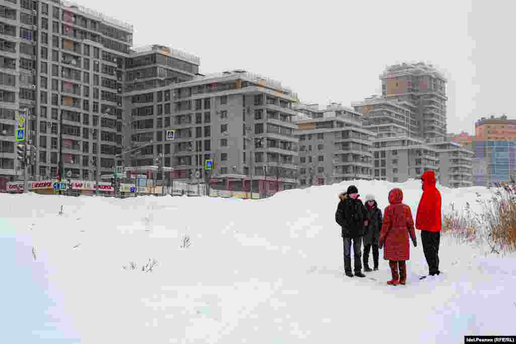 Эта намытая около десяти лет на Казанке назад территория, расположенная вдоль улицы Сибгата Хакима, давно уже превратилась для казанцев, живущих в многоэтажках поблизости, в своего рода парк дикой природы. Летом на песчаных барханах, которые сейчас скрыты снегом, загорают, осенью собирают облепиху с многочисленных кустов и кормят уток, плавающих в заливе, зимой катаются на лыжах и выгуливают собак.