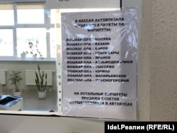 Внутри — несколько касс, работают одновременно — максимум две. Перед кассами — список направлений, на которые продаются билеты: пять междугородних (Москва, Киров и так далее) и пять внутриреспубликанских (Козьмодемьянск, Юрино, Сысоево, Красногорский, Васильевское). "На остальные маршруты продажа билетов осуществляется в автобусах", поясняет надпись под списком. Остальных направлений, вместе с садово-дачными маршрутами — около полусотни.