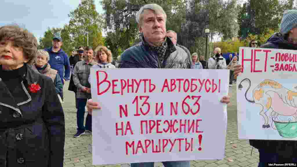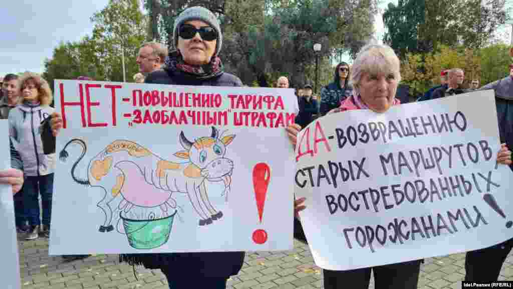 Организаторы митинга отметили, что на акции не было ни одного краевого СМИ. По разным подсчетам в мероприятии присутствовало не более 250 человек. Среди выступающих участников протеста были представители национально-большевистской незарегистрированной партии Эдуарда Лимонова, которые ранее выступали против роста цен на проезд. Выступила на митинге кондуктор Валентина, которая рассказала об антисанитарии в маршрутках, с какими проблемами приходится сталкиваться водителям. Кондуктор в своей речи отметила, что "в автопарке не хватает рабочих рук, у водителей нет аптечек, а после сокращения кондукторов им приходится и за дорогой следить, и обилечивать пассажиров".