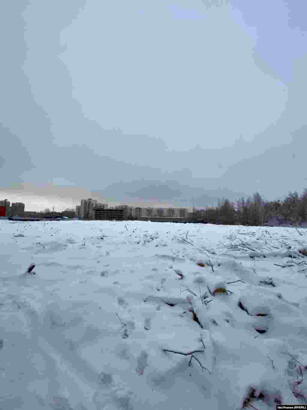 Сейчас речь идёт о строительстве на месте вырубленных 3 га леса нового ЖК. Ни чиновников из мэрии Казани, ни застройщика ГК "Эталон" не смутил тот факт, что именно в этой части рощи росли краснокнижные растения, а воздух здесь оказался наименее загрязненным диоксидом азота. Теперь, понятное дело, вся эта роскошь осталась в прошлом. В ноябре лес вырубали ударными темпами, пни выкорчевывали, а стволы деревьев, по словам очевидцев, сразу же измельчали. Делалось это, очевидно, для того, чтобы истинный размер ущерба невозможно было установить. Фото с места уничтожения рощи сделали, по просьбе корреспондента "Idel.Реалии", местные активисты. Поле, которое читатели могут наблюдать на большинстве снимков, ещё в октябре было густым пойменным лесом, в котором гнездились многочисленные птицы. Желто-красное здание на горизонте — магазин строительных товаров "Мегастрой". Также на нескольких снимках в кадр попадает полоска коричневого забора. Он огороживает участок у проезжей части, на котором застройщик развернул свою деятельность изначально.