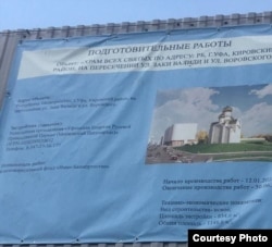 После этого стройку начали посещать и другие активисты башкирского национального движения. В июне они заметили на огородившем участок заборе стенд, на котором сообщалось, что застройщиком (заказчиком) подготовительных работ на объекте Храм Всех Святых является религиозная организация "Уфимская епархия Русской православной церкви (Московский Патриархат)". Исполнитель работ — Благотворительный фонд "Иман-Башкортостан" (отметим, что этот фонд был предназначен для спонсирования достройки мечети "Ар-Рахим" — "Idel.Реалии"). Площадь застройки: 834,6 м2. Начало работ — 12 января 2023 года; срок окончания работ — 30 июня 2023 года.