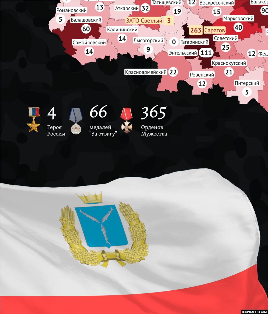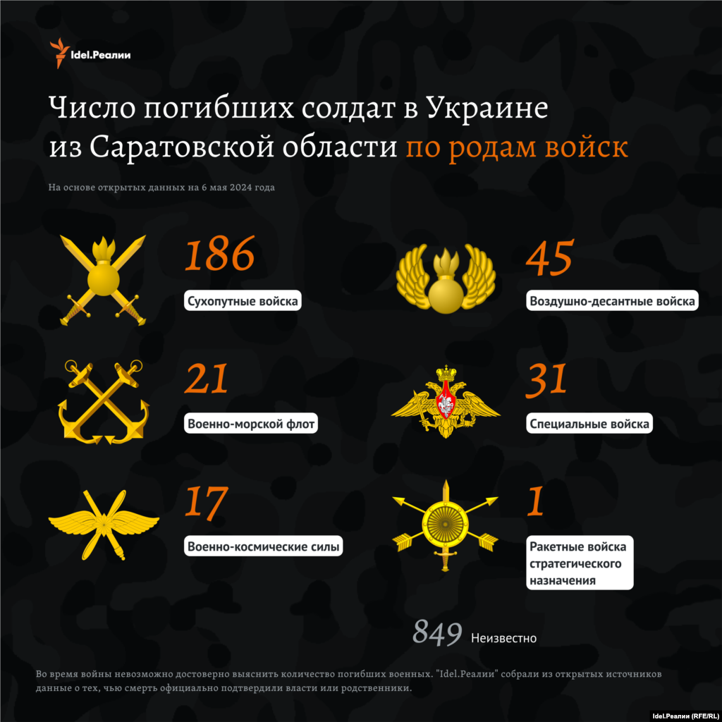 Прошло уже чуть более 800 дней войны в Украине. "Idel.Реалии" собрали всю известную на данный момент информацию о погибших на войне уроженцах Саратовской области — возраст, звания, районы, образование, дети, медали и др.