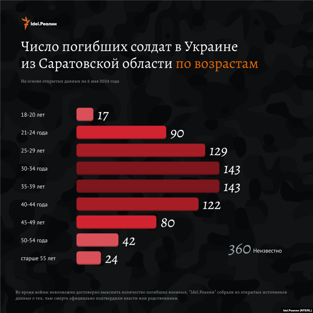 Как минимум 379 человек были в возрасте до 35 лет. Это 33% от общего количества известных погибших — выходцев из Саратовской области.