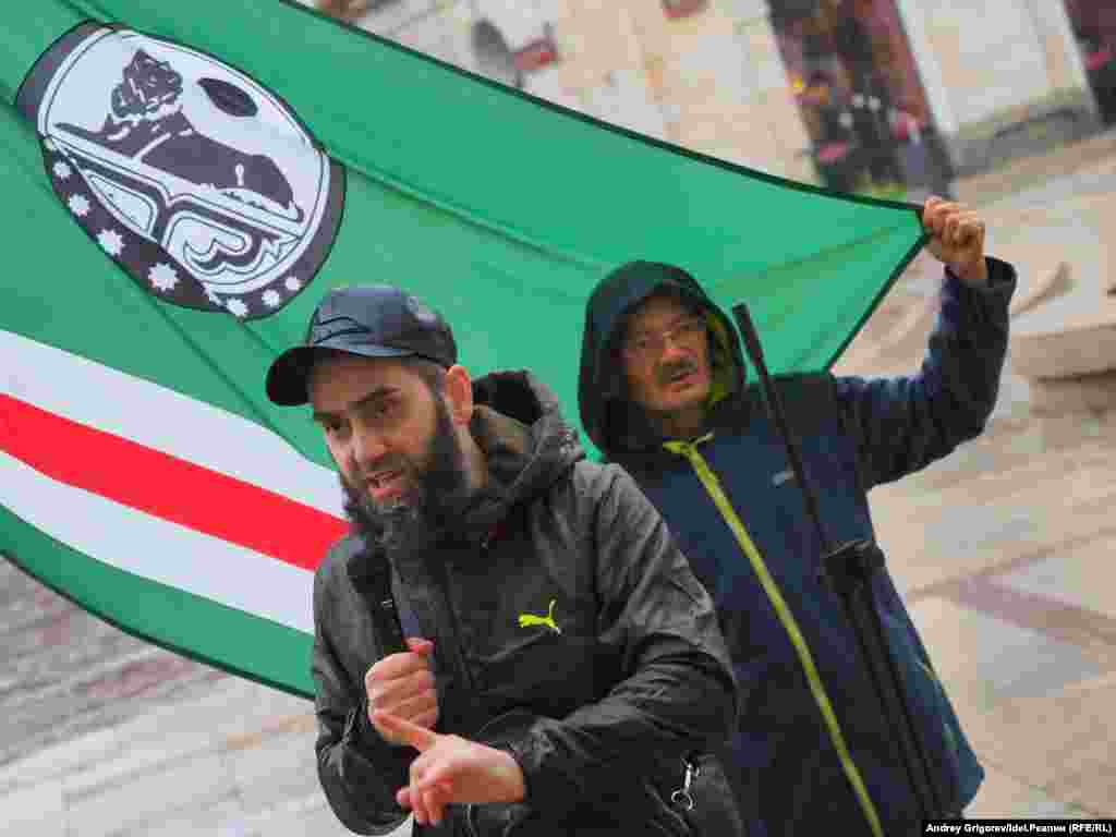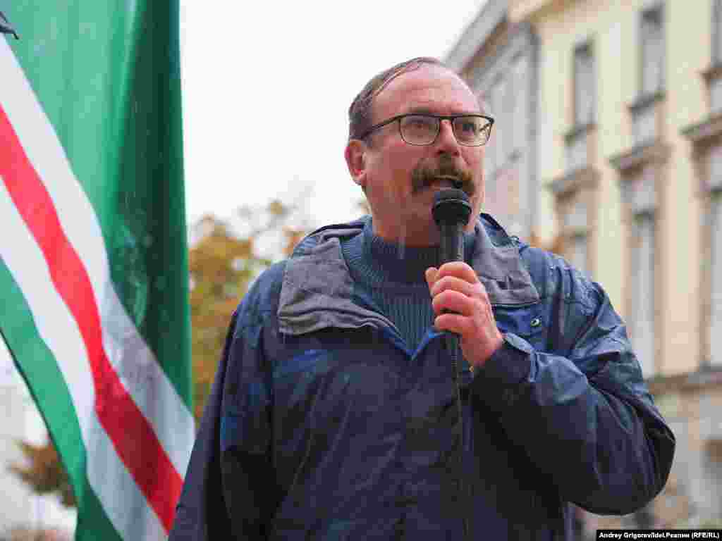 Всего, несмотря на проливной дождь, собралось более тридцати человек, которым Нафис Кашапов раздал плакаты собственного изготовления. Надписи на плакатах были сделаны на разных языках — русском, татарском, украинском, белорусском, польском, английском.