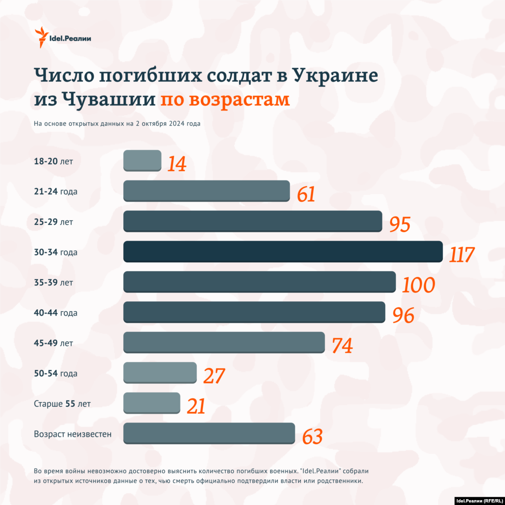 Количество погибших в действительности больше, мы руководствуемся лишь данными из открытых источников. По подсчетам "Idel.Реалии", с начала войны погибли как минимум 19 993 уроженца и жителя Поволжья.