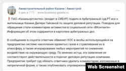 К заметке прикреплена ссылка на новость в издании "Бизнес онлайн" — но при этом на сайте СМИ, как убедился корреспондент "Idel.Реалии", эта публикация появилась только в 7:30 утра. По мнению активистки, администрация, распространяя новость об иске, почти наверняка согласовывала свои действия с предприятием.