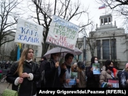 Женщина рассказала, что приехала в Берлин "за шестьсот километров", чтобы выразить солидарность с Фаилем Алсыновым и другими активистами из Башкортостана: