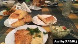 А делегатов и гостей угощают в НКЦ "Казань". Здесь больше фруктов и овощей.